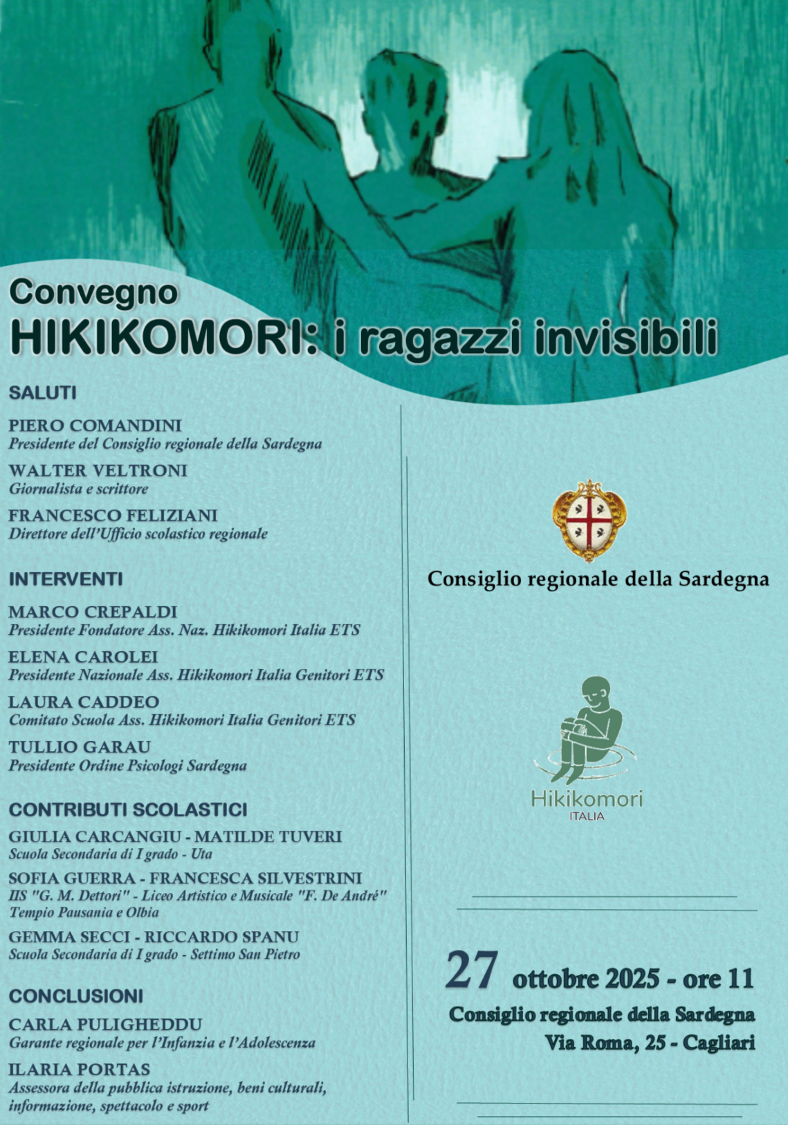 Lunedì 27 ottobre si è svolto a Cagliari, presso il Consiglio Regionale della Sardegna, il Convegno dal titolo “Hikikomori: i ragazzi invisibili”. L’evento organizzato dall’Associazione Hikikomori Italia nasce dalla volontà di mettere in evidenza un disagio sociale sempre più diffuso e poco conosciuto ma che interessa numerosi giovani e le loro famiglie.